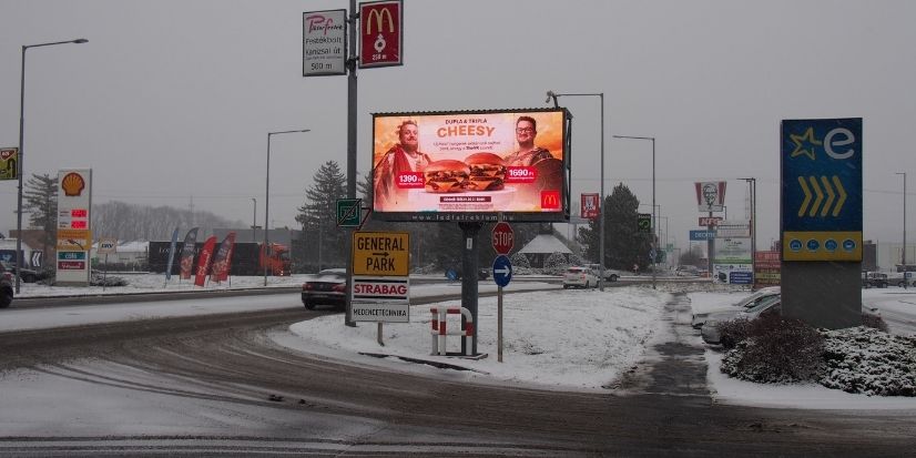 A Balaton – Szombathely – Nagykanizsa irányába elágazó körforgalom közelében.