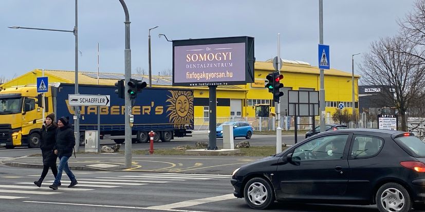| A Zanati és Selyemrét út kereszteződésében helyezkedik el - Észak-Kelet felől, az M86-os autópályán keresztül Győr irányából haladó forgalom koncentrálódik. Fő kereskedelmi út, 2 nagy multivállalat bejáratánál (Aptív, Schaeffler Savaria Kft.) Közelében számos bevásárlóközpont (Tesco, Family Center, Praktiker, Penny, Lidl, Burger King, Dechatlon) 16 óra üzemidő alatt több ezer gépjármű, kerékpáros utas halad át. Elérésszám: 1.066.000 fő/hó |