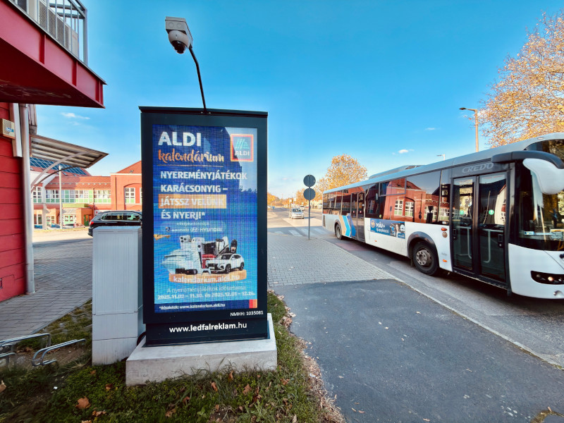 A városi autóbusz-állomás és a Vásárcsarnok között, a Kanizsa Pláza közelében található.